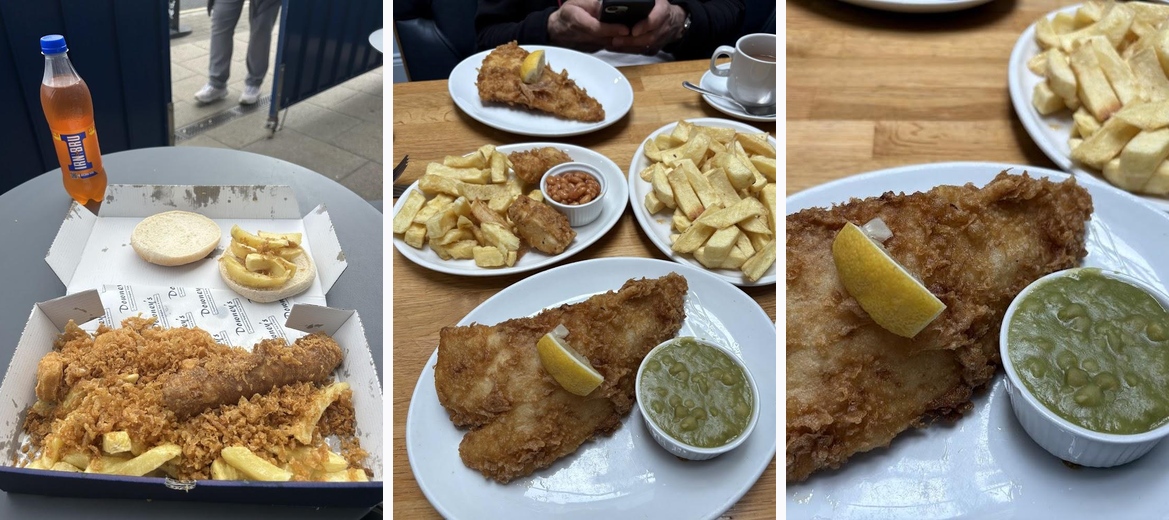Stopped by today for the first time after having stroll along seaham beach. Was a little busy, but expected as it was the weekend.. Cod & chips, jumbo sausage and chips, 2 cans of coke and 2 tubs of curry for £22. So in my opinion it’s average pricing. Food was tasty, hot and fresh. Will definitely be back